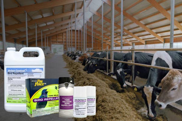 Prevent bird flu in the dairy barn, garage or other indoor structures with Avian Control, the leading EPA-registered bird repellent in the U.S. The proven, non-toxic ingredients work quickly to drive swallows, starlings, blackbirds, pigeons, grackles and other nuisance birds away. Avian Control can be safely applied indoors, even directly on feed, using a mister-sprayer. For additional protection from infected birds, Avian Fog Force TR Bird Repellent releases an invisible aerosol mist that keeps those birds away.