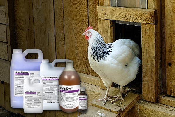 Keep your flock flu-free with Avian MigrateĀ® Goose and Bird Repellent, a non-lethal, liquid solution that discourages geese, ducks and other aquatic birds from visiting your farm or ranch. By irritating their pain centers and creating an unpleasant sensation, it teaches them to avoid treated areas. InvisiDye UV Marker is a non-lethal UV marker training tool you can mix with Avian MigrateĀ® to create an even more effective deterrent.
